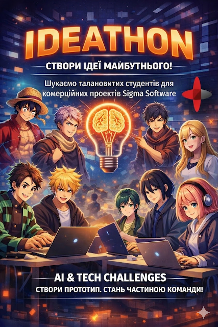 Запрошуємо студентів університетів взяти участь у IDEATHON — інтенсивній події, де невеликі команди працюватимуть над реальними викликами. Наші спеціалісти запропонують вам цікаві теми, а ви спробуєте знайти їм цікаві рішення.